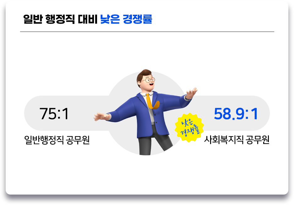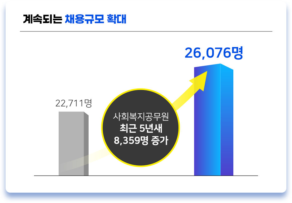 1.Ãë¾÷ÀÚ ¼ö Áõ°¡ ±Ô¸ð »óÀ§ 10´ë »ê¾÷ »çȸº¹Áö ¼ºñ½º¾÷ 385.9(õ¸í) 2.Àü¹®Á÷À¸·Î¼ ±¤¹üÀ§ÇÑ Ãë¾÷ºÐ¾ß Àå¾ÖÀÎ / ³ëÀÎ º¹Áö - ÁÖ°£ º¸È£¼¾ÅÍ - Àå¾ÖÀÎ Á¾ÇÕ º¹Áö°ü - Àå¾ÖÀÎ Ãë¾÷±â°ü - Àç°¡º¸È£½Ã¼³¡¤¼¾ÅÍ - ¿ä¾ç¿ø / º¸È£¼Ò ¾Æµ¿ / û¼Ò³â / Çб³ - û¼Ò³â ¼ö·Ã°ü - Áö¿ª ¾Æµ¿¼¾ÅÍ - Çб³ »çȸº¹Áö»ç - û¼Ò³â °ü·Ã º¹Áö¼¾ÅÍ Àç´Ü / Çùȸ - µµ¡¤½Ã¡¤±º¡¤±¸ »êÇÏ º¹Áö¼¾ÅÍ - ±â¾÷¡¤´Üü º¹ÁöÀç´Ü - Çùȸ ±Ô¸ðÀÇ Áö¿ø¼¾ÅÍ ¿©¼º / ÇѺθð / ´Ù¹®È - °Ç°°¡Á¤ Áö¿ø¼¾ÅÍ - ¿©¼ºº¹Áö Áö¿ø¼¾ÅÍ - ´Ù¹®È °¡Á· Áö¿ø¼¾ÅÍ 3.Àü¹®Á÷ ¿µ¿ªÀÇ È®´ë Çб³ »çȸº¹Áö»ç¶õ? Çб³, ±³À°º¹Áö¼¾ÅÍ µî¿¡¼ »ç·Ê°ü¸®, Áö¿ª»çȸÀÚ¿ø °³¹ß, Çб³Æø·Â ´ëó¿Í ¿¹¹æ, ¾Æµ¿Çдë, ÀÎÅÍ³Ý Áßµ¶¿¡ ´ëÇÑ ¾÷¹«¸¦ ´ã´çÇϸç Çлýº¹Áö ÁõÁøÀ» À§ÇÑ ¾÷¹« ¼öÇà ÀÇ·á »çȸº¹Áö»ç¶õ? º´¿øÀ» ÀÌ¿ëÇϴ ȯÀڵ鿡°Ô ÀçȰ°ú »çȸº¹±Í¸¦ À§ÇÑ »ó´ã°ú Áöµµ ¾÷¹«¸¦ ¼öÇàÇØ ȯÀÚ¿¡°Ô º¸´Ù ÀûÇÕÇÑ ÀÇ·á ¼ºñ½º¸¦ Áö¿øÇÏ´Â ¾÷¹«¸¦ ¼öÇà 4.°è¼ÓµÇ´Â ä¿ë±Ô¸ð È®´ë »çȸº¹Áö°ø¹«¿ø ÃÖ±Ù 5³â»õ 8,359¸í Áõ°¡ 5.ÀÏ¹Ý ÇàÁ¤Á÷ ´ëºñ ³·Àº °æÀï·ü ÀϹÝÇàÁ¤Á÷ °ø¹«¿ø 75:1vs»çȸº¹ÁöÁ÷ °ø¹«¿ø 58.9:1