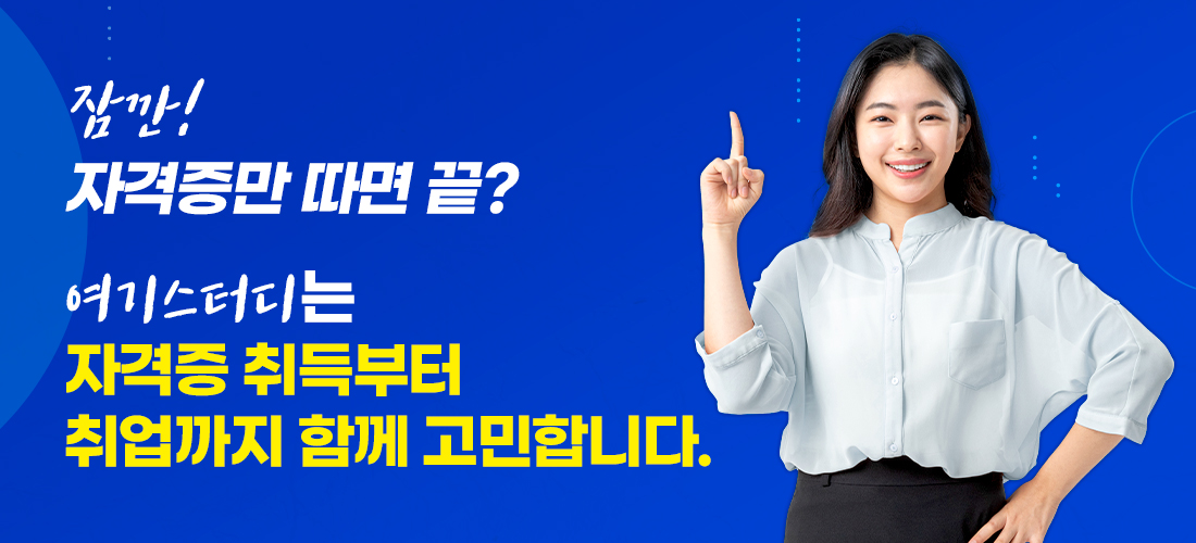 잠깐! 자격증만 따면 끝? 여기스터디는 자격증 취득부터 취업까지 함께 고민합니다.