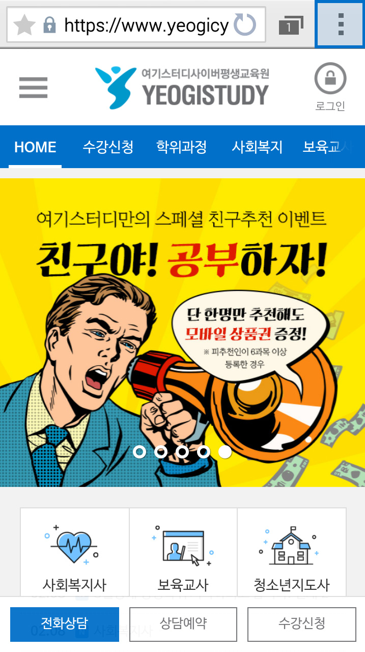 STEP 01. 브라우저 우측 상단 [메뉴 아이콘] 클릭