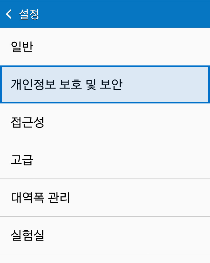 STEP 03. [설정] - [개인정보 보호및보안] 클릭