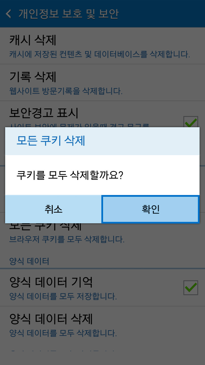 STEP 05. [모든 쿠키삭제] - [확인] 클릭