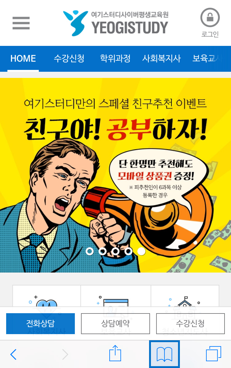 STEP 01. 브라우저 하단 [책아이콘] 클릭