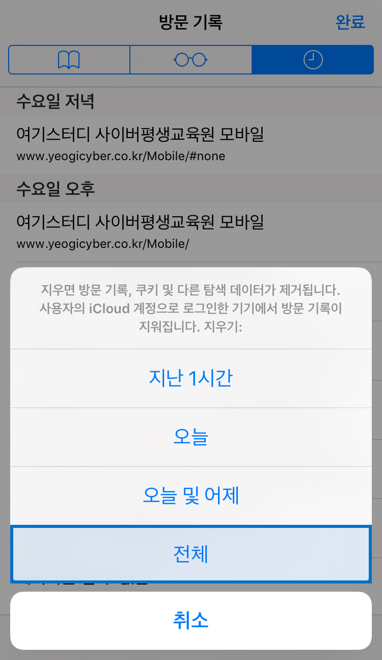 STEP 03. 방문기록 지우기 옵션 중 [전체] 클릭