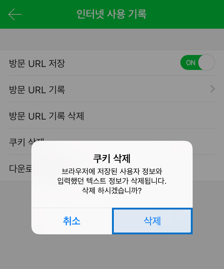 STEP 04. [쿠키삭제] - [확인] 클릭