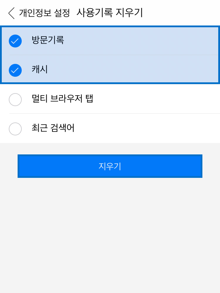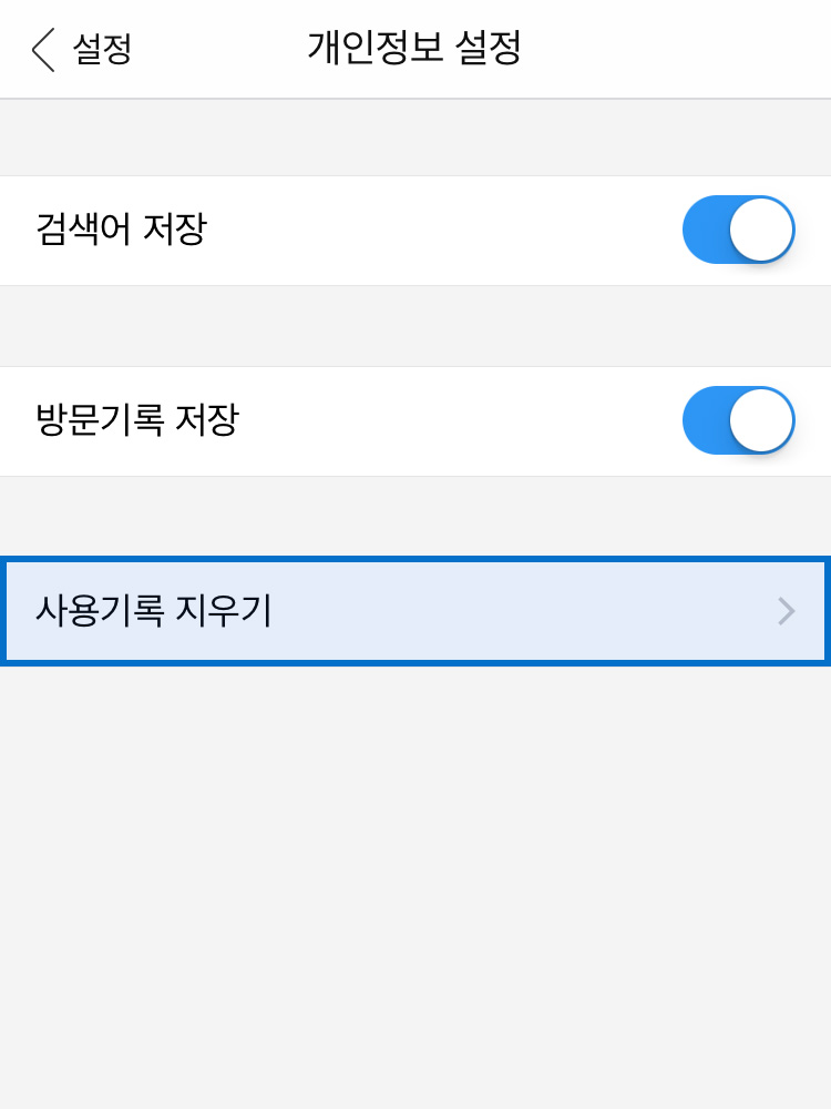 STEP 04. 메뉴 중 [사용기록 지우기] 클릭